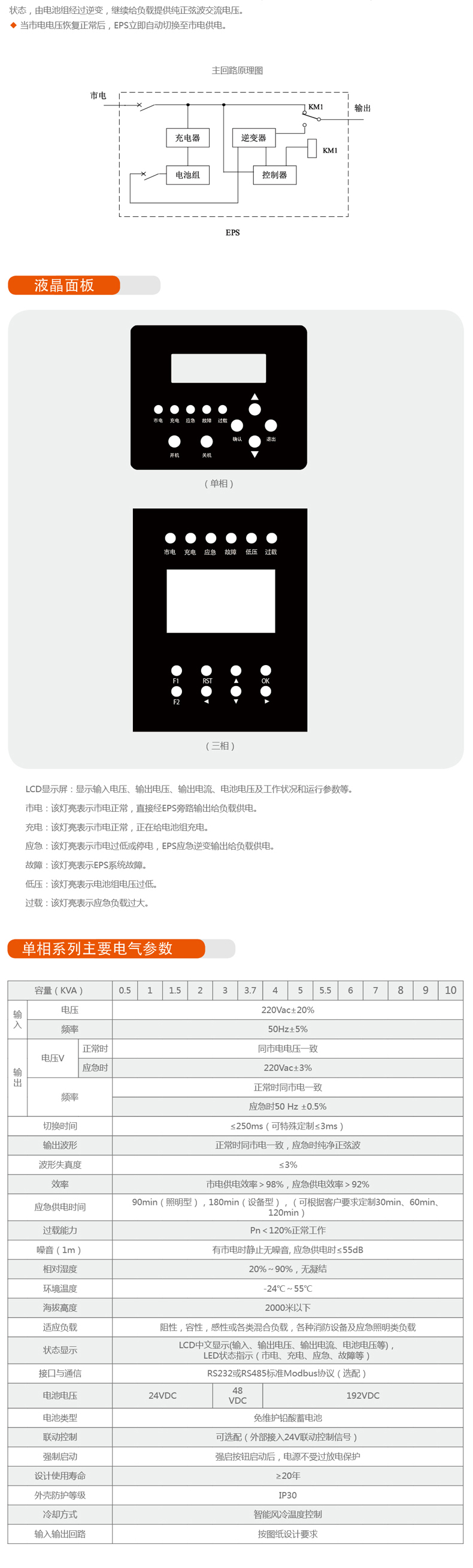 EPS:在電網(wǎng)正常時(shí)處于睡眠狀態(tài),耗電不足0.1%,無(wú)電網(wǎng)供電時(shí),其效率92%以上